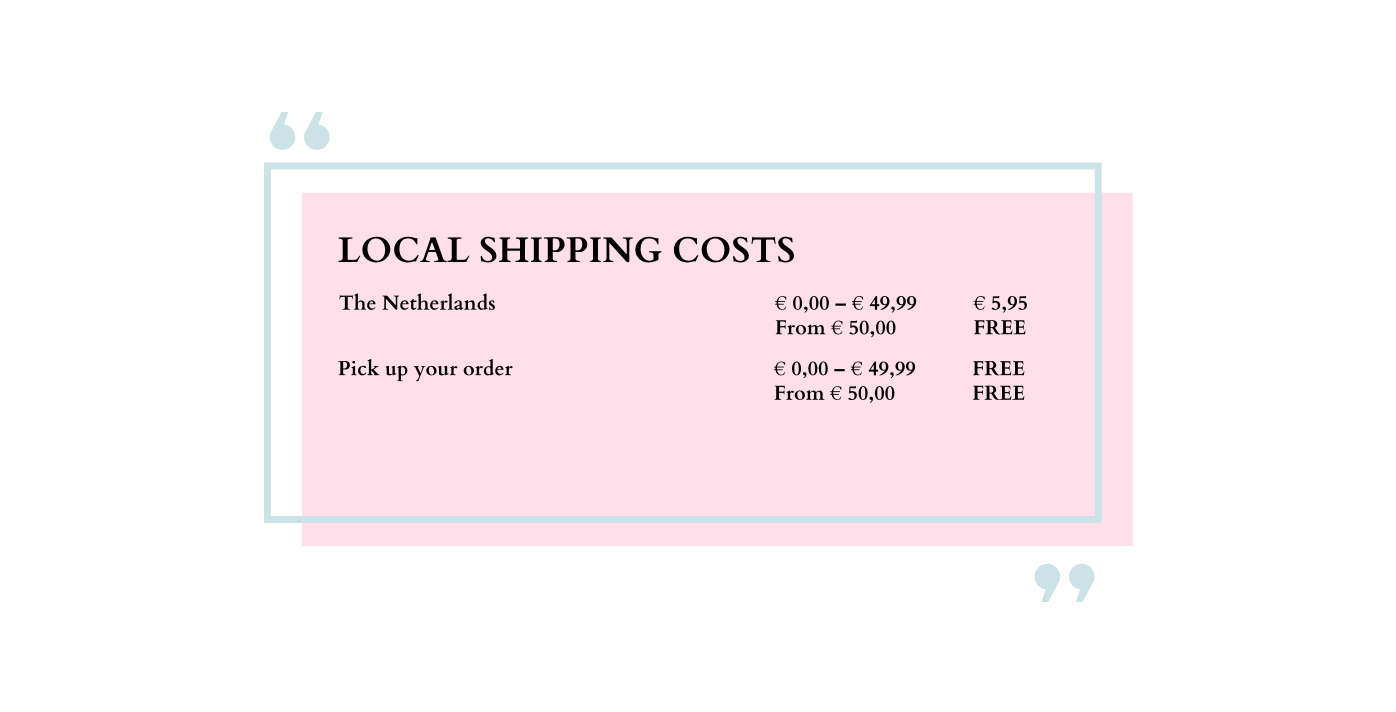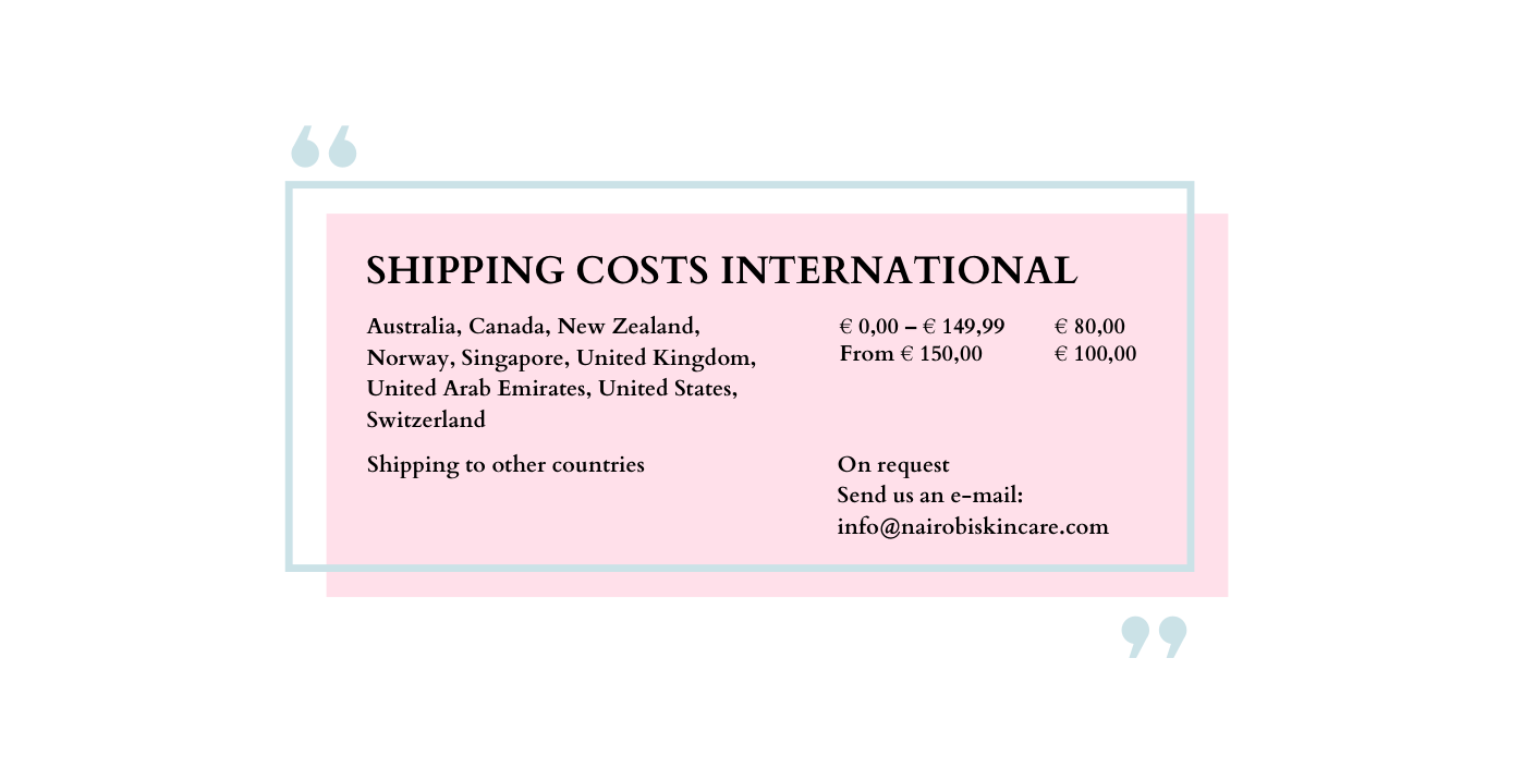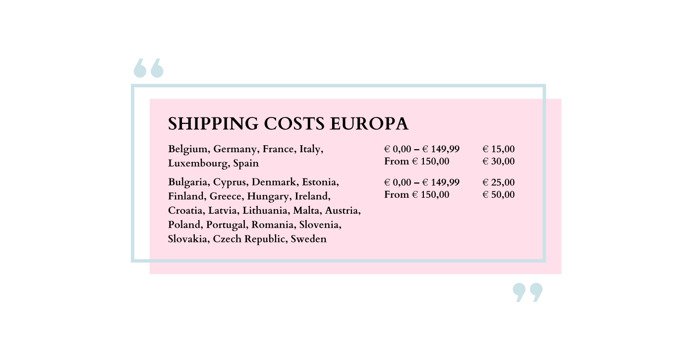 We also ship to several countries outside Europe. Below you will find an overview of the shipping rates and destinations.