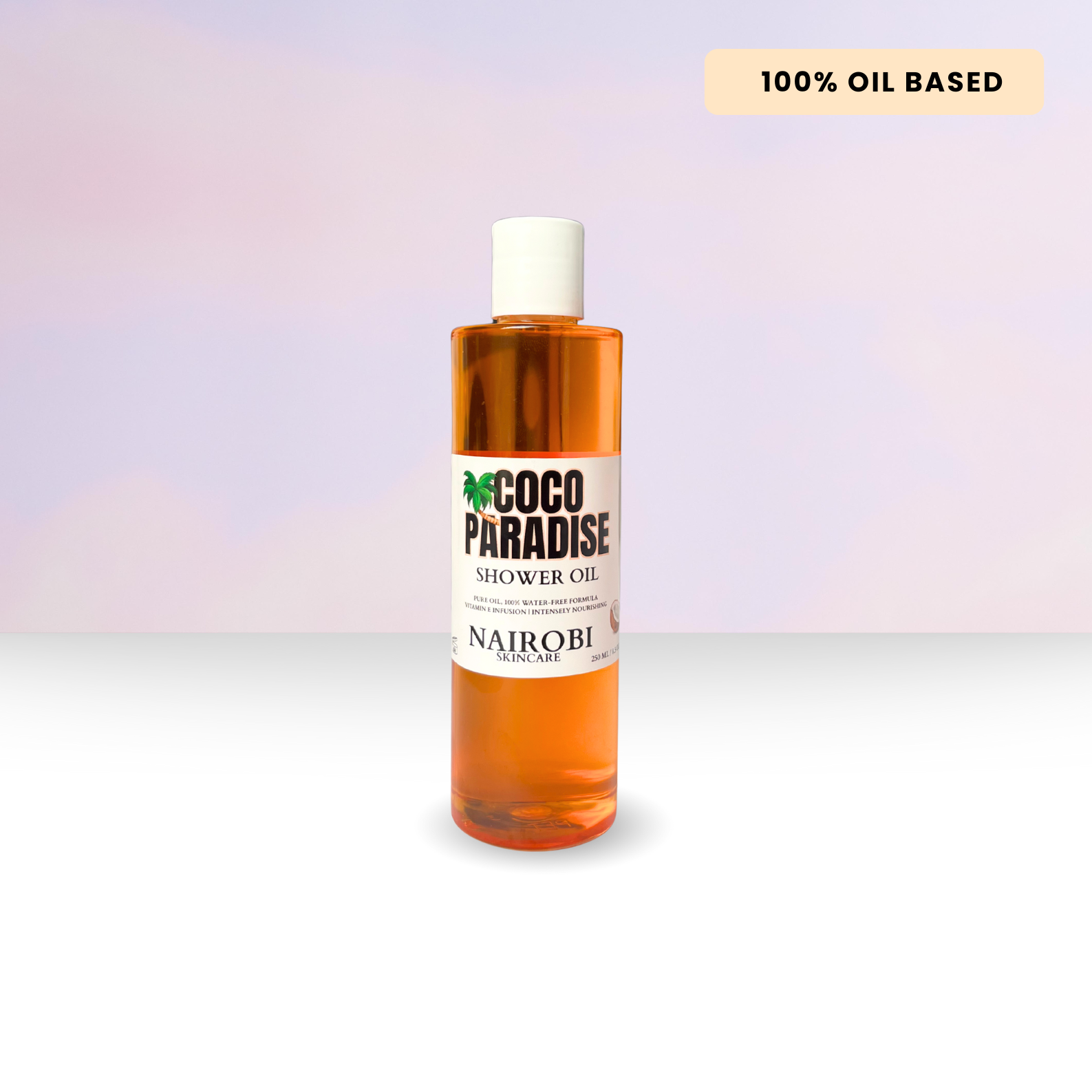 Unlike conventional shower oils that are diluted with water, our Coco paradise Shower Oil is crafted using only pure, premium oils. This concentrated blend of jojoba, apricot kernel, almond, coconut, and rosehip oils, enriched with vitamin E, provides maximum nourishment for your skin. The unique formula transforms into a milky emulsion upon contact with water, making it easy to apply while delivering intense hydration.